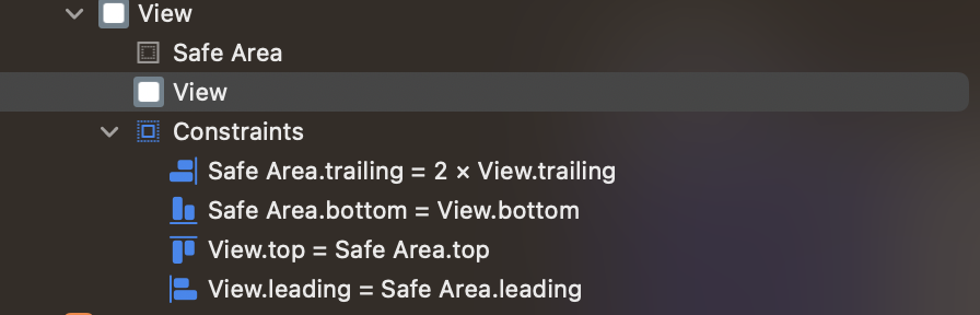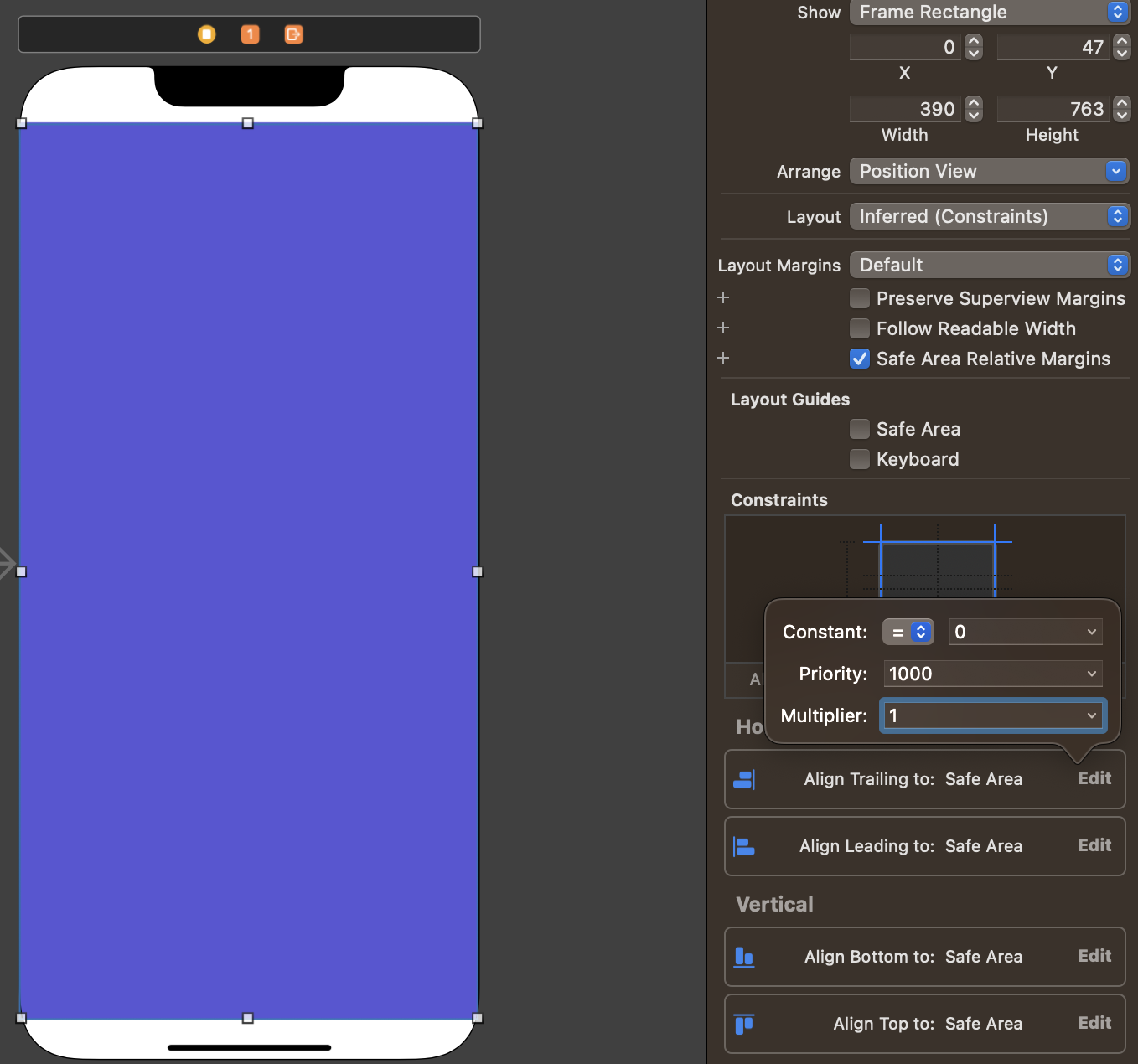 SafeArea.trailing = (ํ๋์ UIView.trailing )* multiplier + Constant