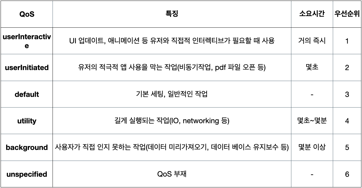 ์ถ์ฒ : https://developer.apple.com/documentation/dispatch/dispatchqos/qosclass