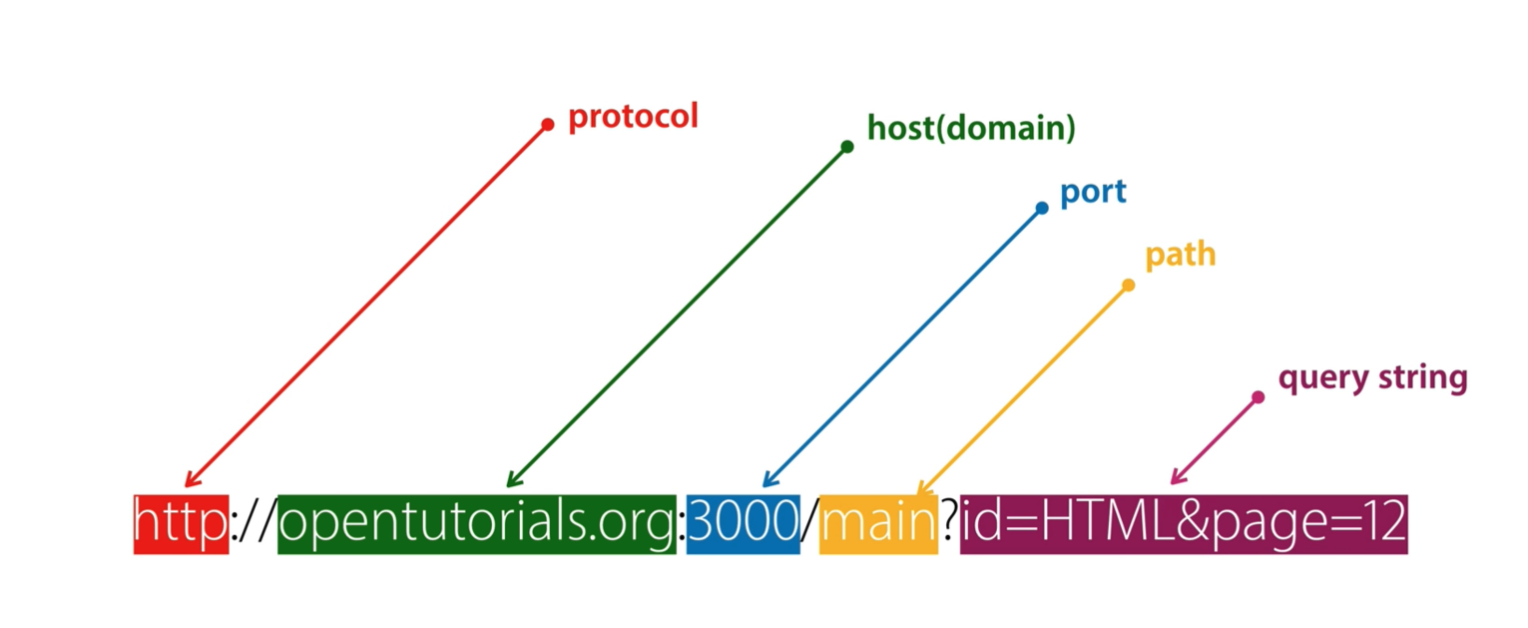 protocol(scheme), host(domain), port, path, query string으로 구조를 나눌 수 있습니다.