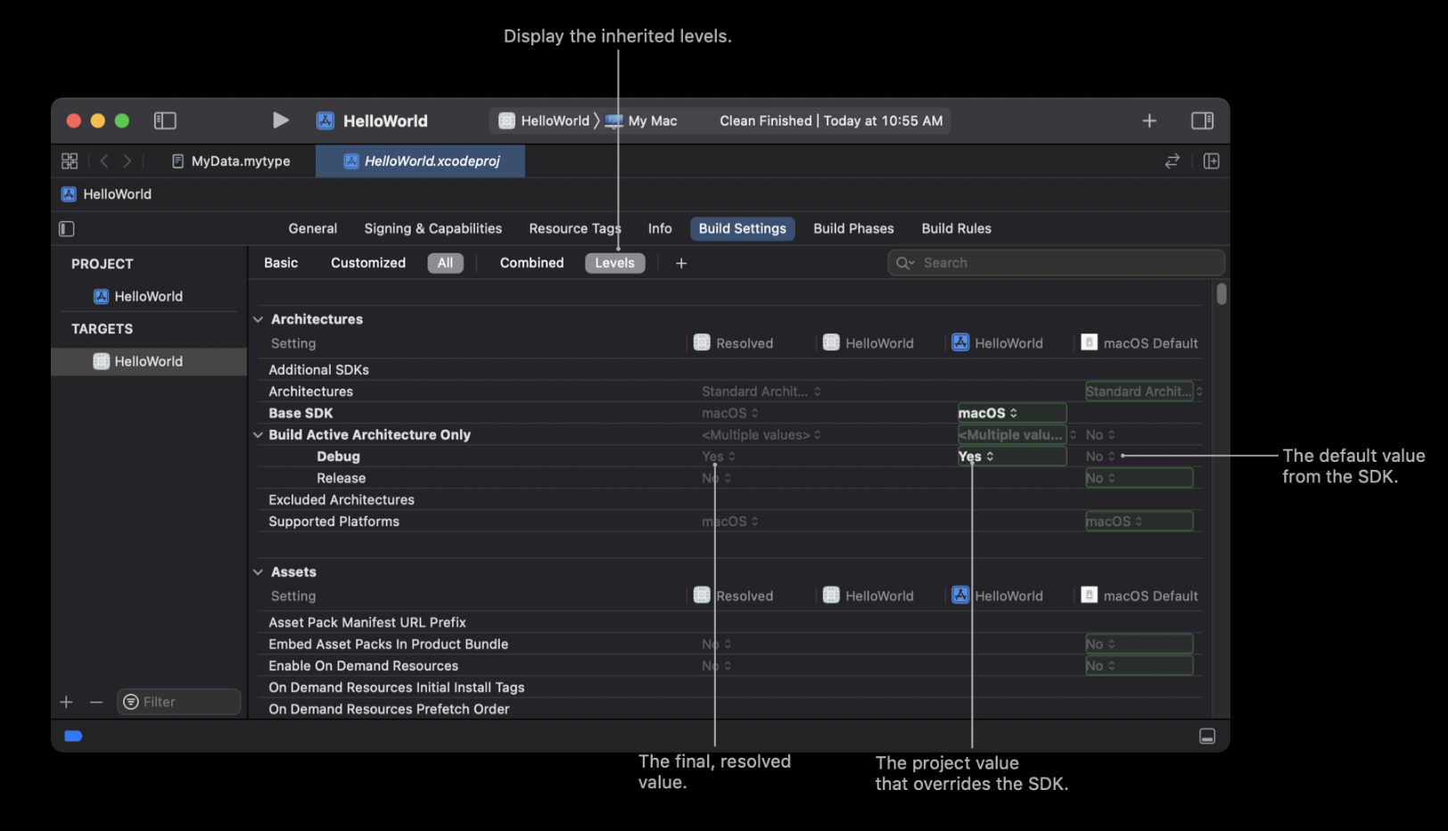 target์์ build settings๋ฅผ ์ด๊ณ levels ๋ก ๋ณด๋ฉด